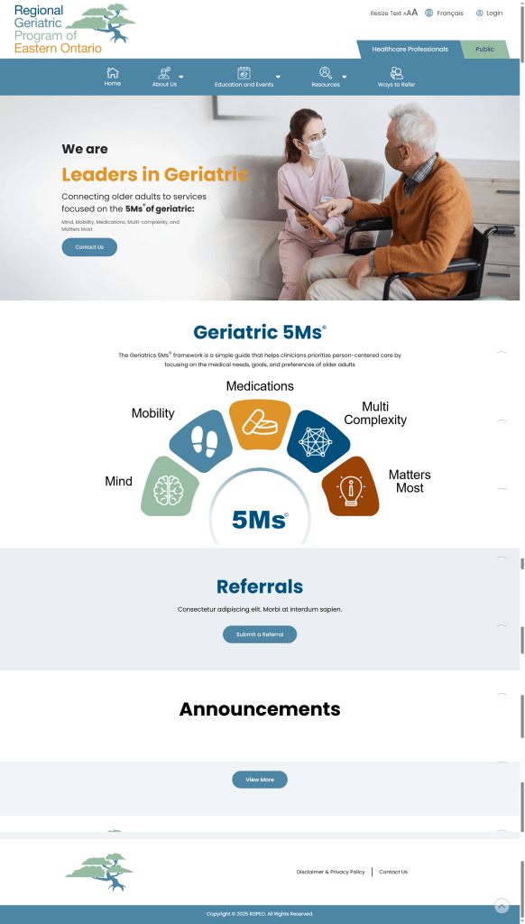 Led a website renovation project for the Regional Geriatric Program of Eastern Ontario (RGPEO), aiming to improve user navigation, simplify the design for our target audience (older adults and carers and healthcare workers), brand consistency, and the visibility of core programs and resources. This project was critical to modernizing how the organization shares information and engages with internal and external stakeholders.