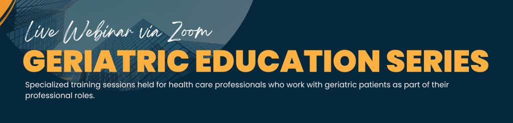 The Geriatric Education Series brings together healthcare professionals from diverse fields to learn and collaborate. Each session combines a didactic presentation with a case study discussion. Participants join breakout rooms of 8–10 people grouped by role and organization, encouraging cross-disciplinary dialogue. Two facilitators guide each group, fostering engagement and shared learning.